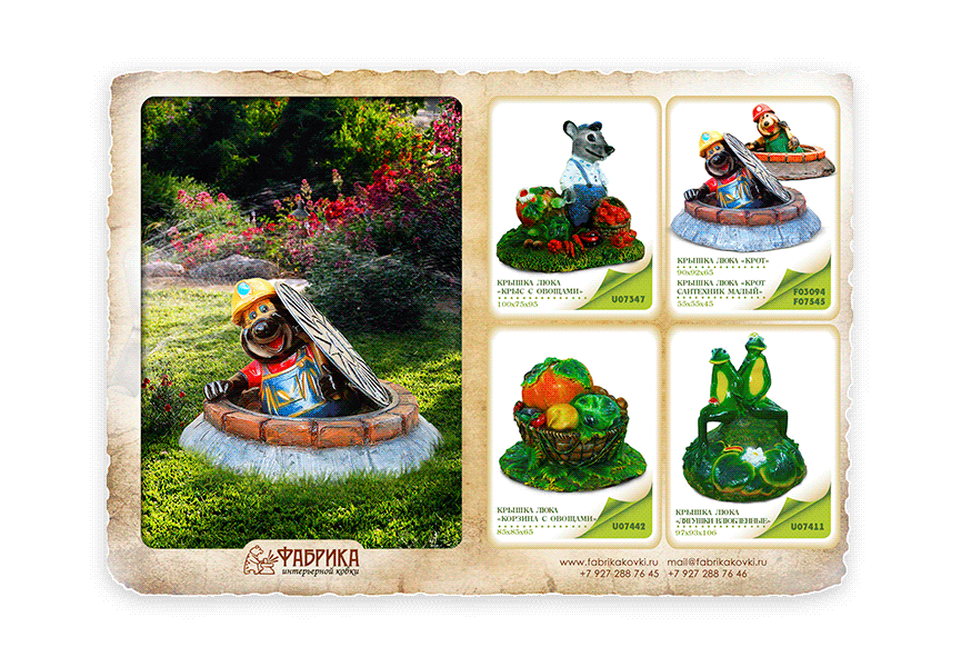 Мы предлагаем огромный выбор моделей для любых участков, который удовлетворит самые необычные запросы ваших покупателей. Товары представлены тематическими коллекциями и могут использоваться как поодиночке, так и целыми ансамблями.