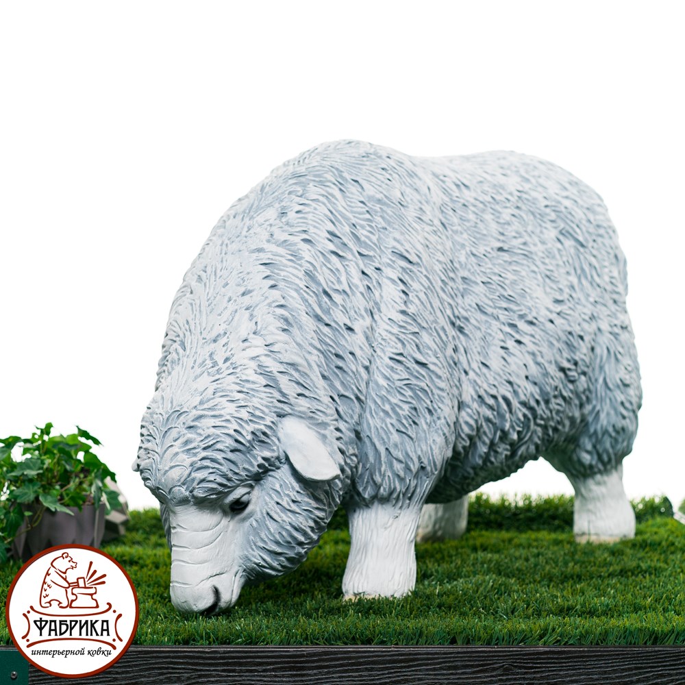 Фигура Овца выполнена из влагостойкого и прочного материала - стеклопластика. Она используется для декора садовых и дачных участков, скверов и парков, рекламных целей.