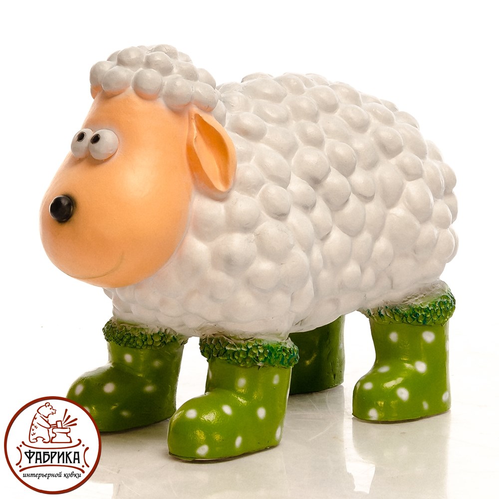Декоративная фигура Овечка в сапогах. Материал изготовления: полистоун (влагостойкий). Фигура подходит для декора садовых и дачных участков.
