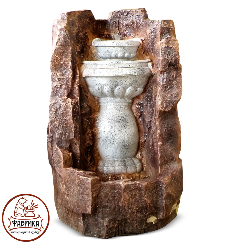 Каскадный водопад - фонтан в форме античной колонны высеченной в скале. Материал изготовления стеклопластик, устойчивый к снегу и дождю. Фонтан работает от сети 220v и имеет длину шнура 1,2м.  Незаменимое украшение садовых участков в античной стилистике. Работает от сети 220 v. В комплект входит помпа для автоматической подачи воды. С обратной стороны фонтана имеется отверстие для хранения воды.