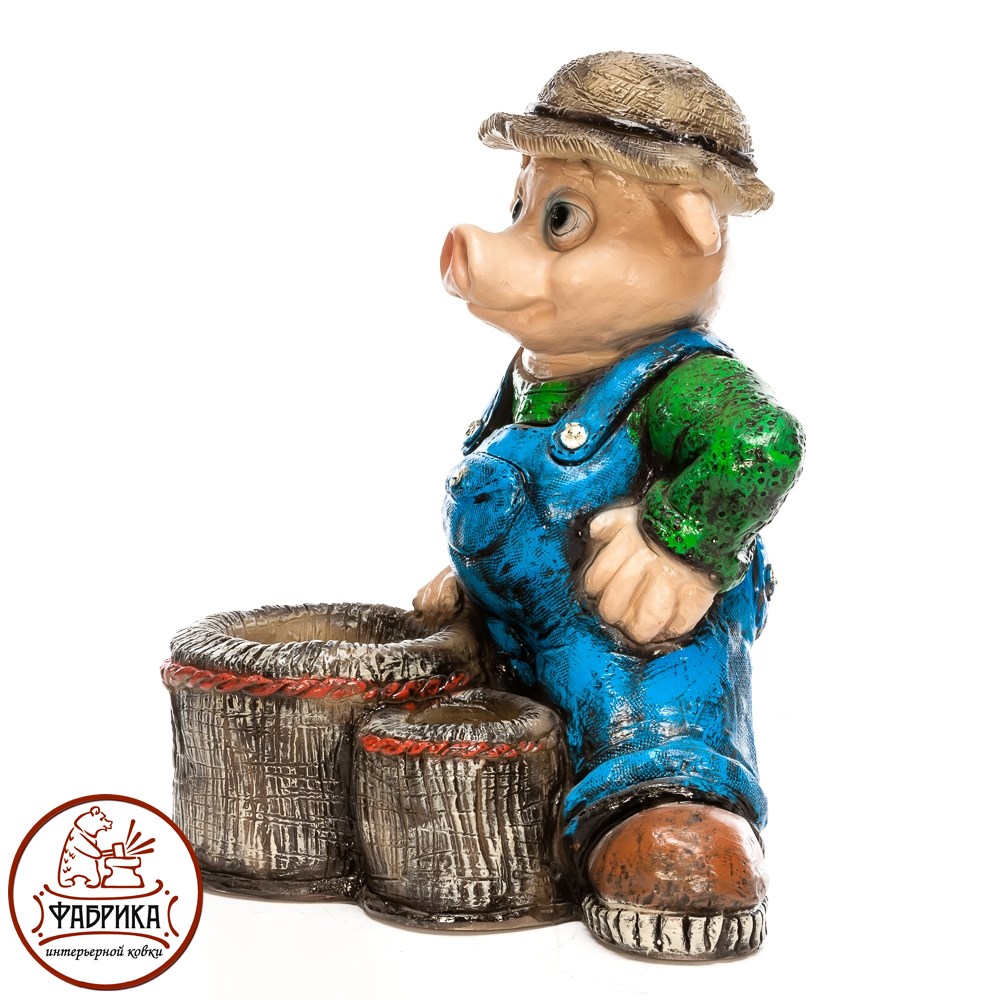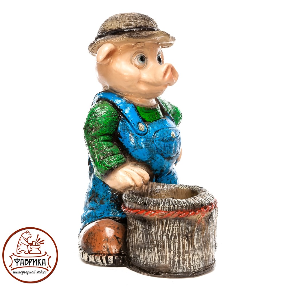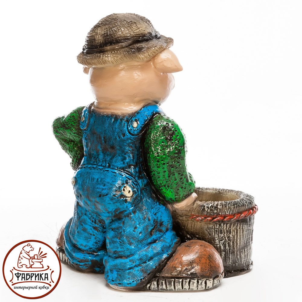 Декоративное кашпо для цветов Поросенок с корзинкой арт. F08494 впишется на любом садовом или дачном участке. Материал изготовления: полистоун. Подходит для посадки растений.