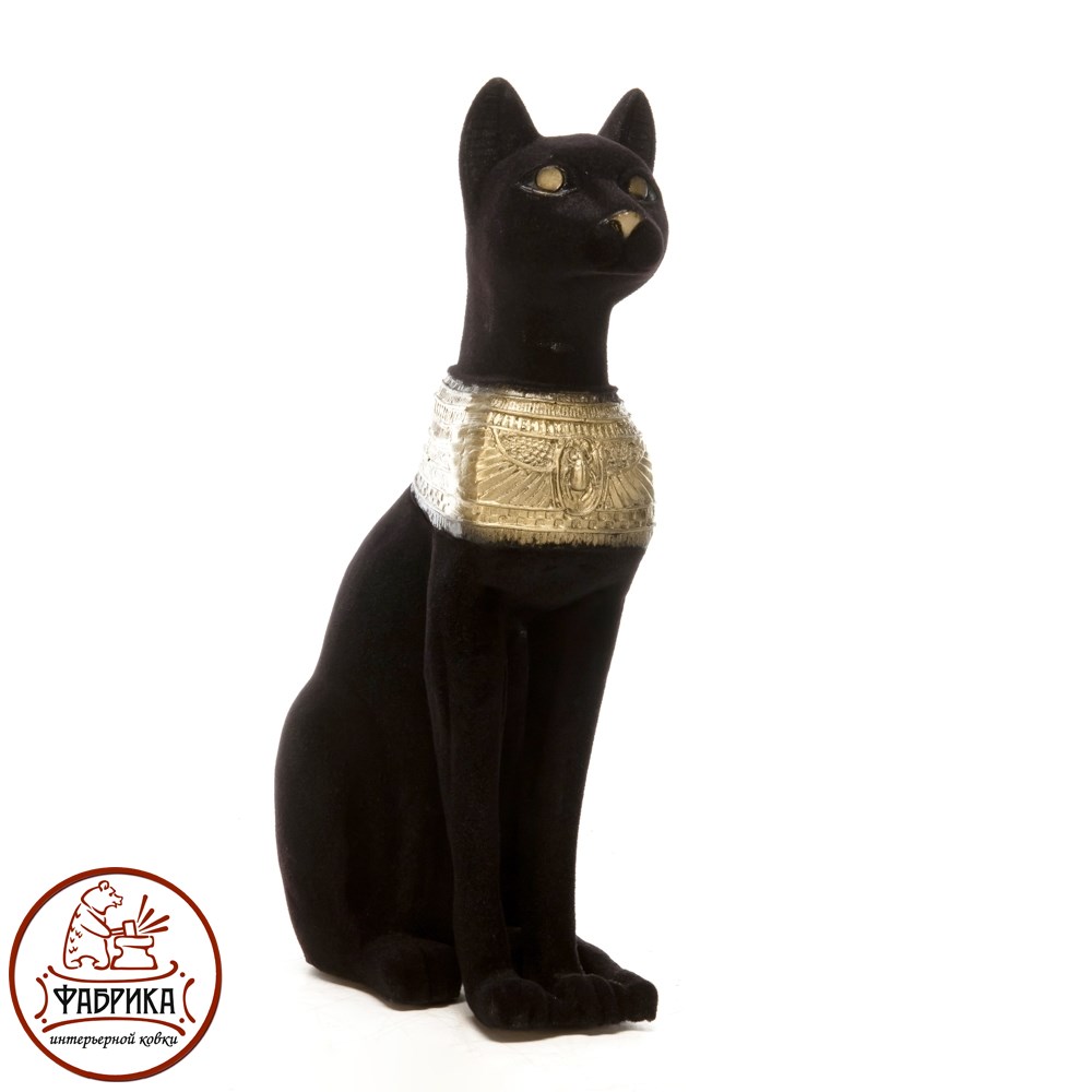 Статуэтка египетская кошка для дизайна интерьера. Материал изготовления: полистоун, флок.