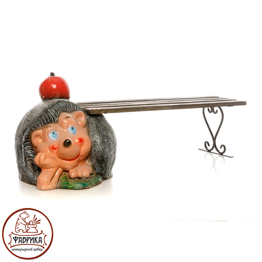 Красивая и долговечная скамейка для сада "Ёж с грибочком". Изготовлена из кованого метала, дерева и стеклопластика. Она станет приятным дизайнерским дополнением вашего участка.