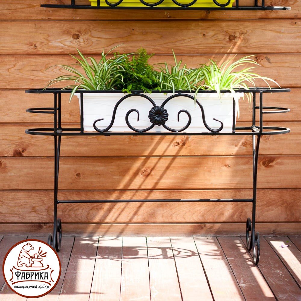 Напольная подставка 12-400 представляется собой легкую и компактную контрукцию. В подставку размещаются несколько горшечных цветков или пластиковый ящик с растениями.