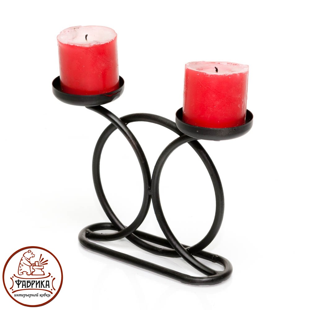 Подсвечник на две свечи арт. 607-13. Материал изготовления: металл. Покраска: черный цвет. Подходит для размещения: на столе, полке, тумбе, комоде, камине. Декоративные элементы: кольца.