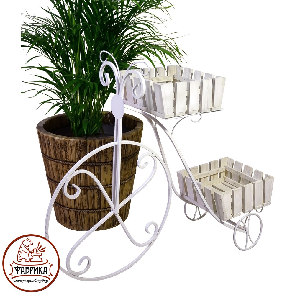 Основу конструкции садовой подставки 59-402 составляет, кованый металлический каркас и деревянные кадки для подставки растений. Данная модель имеет форму изящного, старомодного велосипеда. Выгодная оптовая цена, возможна поставка крупным и мелким оптом.