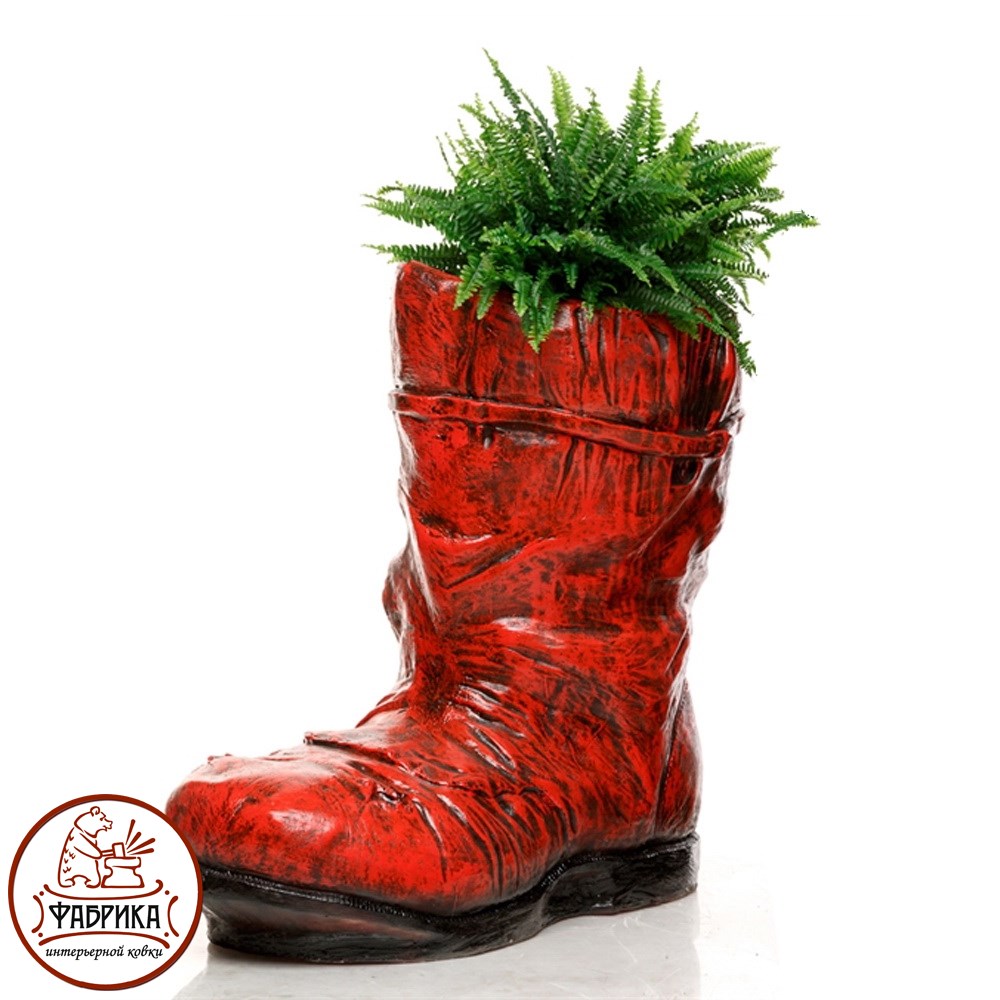 Кашпо для цветов Сапог изготовлено из стеклопластика. Влагостойкий материал для садовых растений. Вариант покраски: красный, золотой - уточняйте у менеджеров при оформлении заказа.