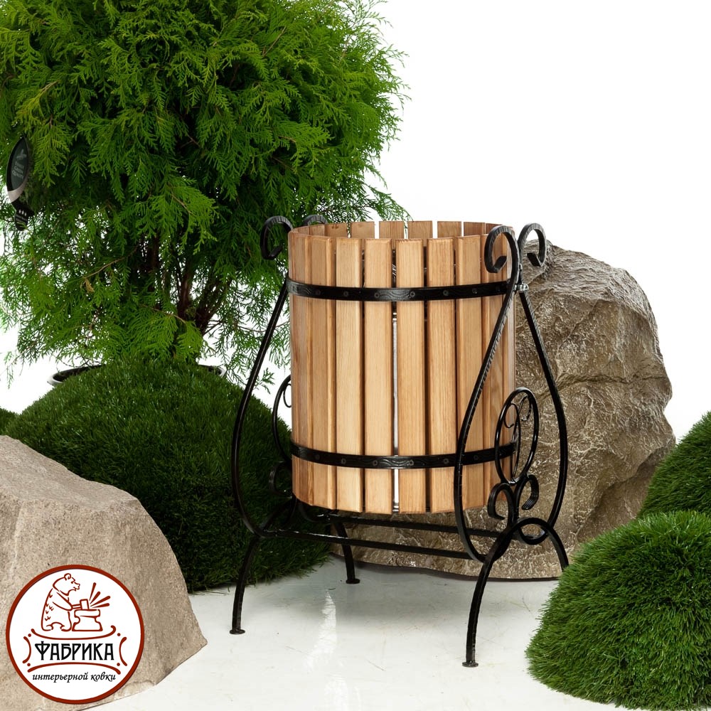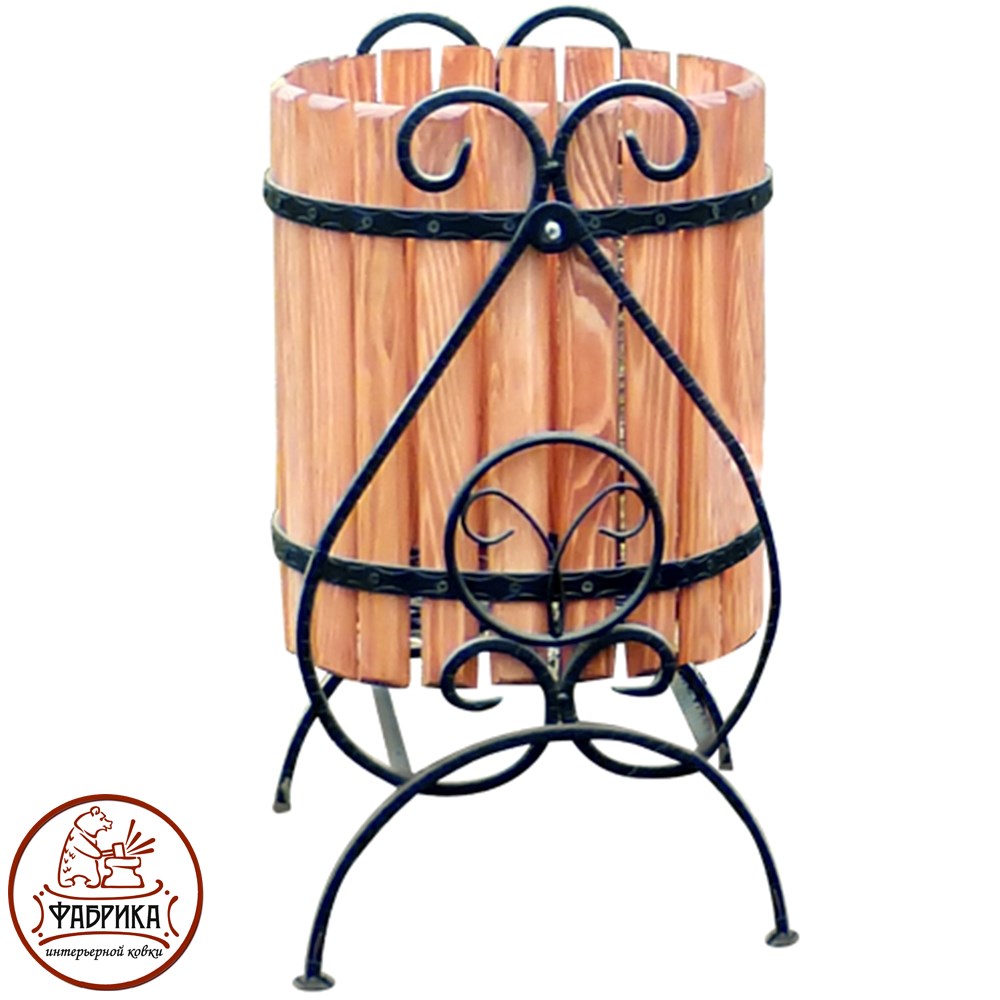 Кованая урна 59-301 растительный орнамент металлического прута которой напоминает листочек дерева. Подходит для размещения как на садовом участке, так и в парковых зонах, местах общего пользования. Урна крепкая, устойчивая.